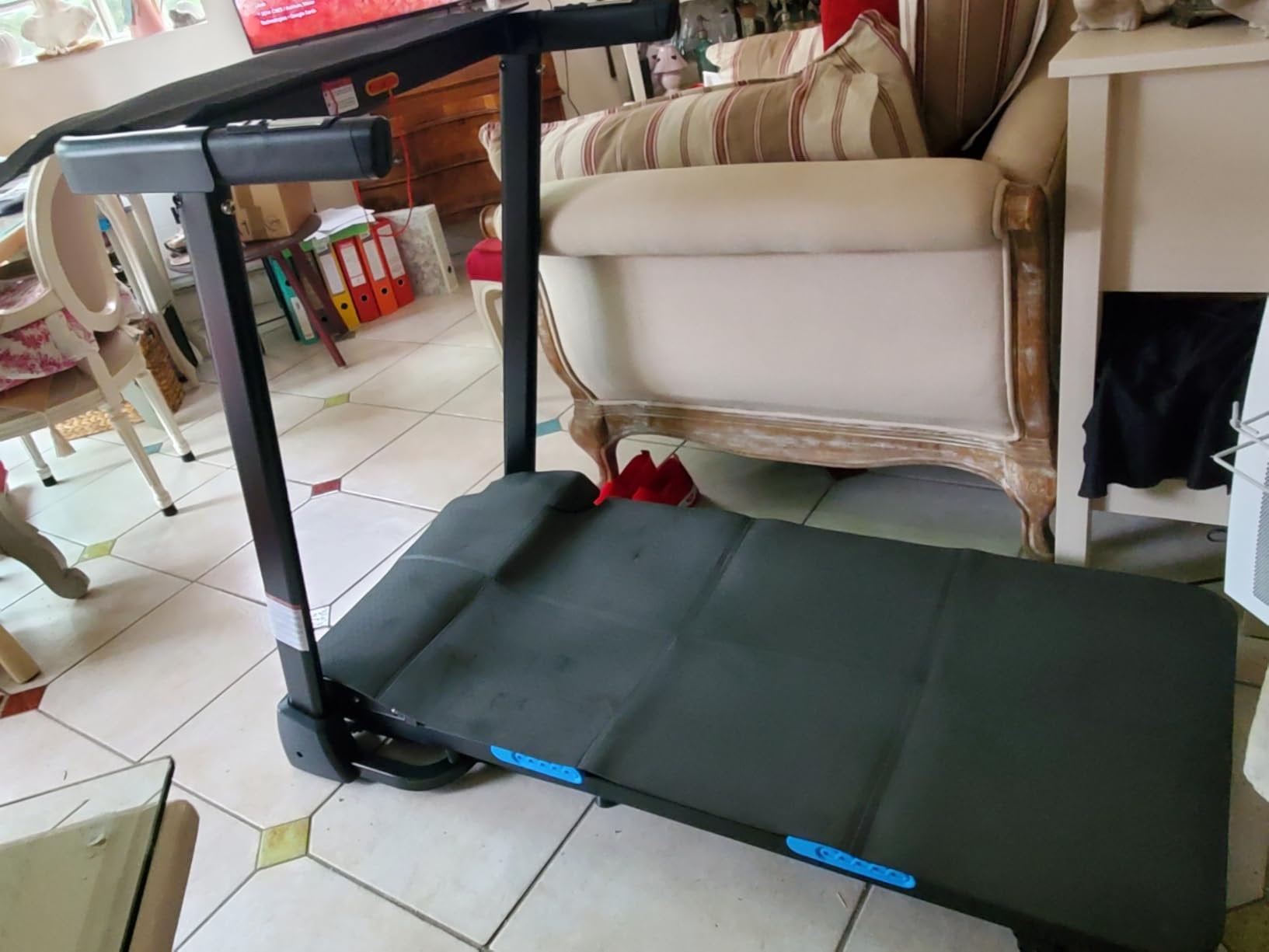 Appareil très performant pour tout les âges. Pente de 1 à 15 %. Pliable, mais je pense qu'il est préférable de le laisser toujours ouvert pour vraiment l'utiliser. J'ai mis l'écran à plat et j'ai recouvert d'un tapis de yoga le haut et le bas pour la poussière.