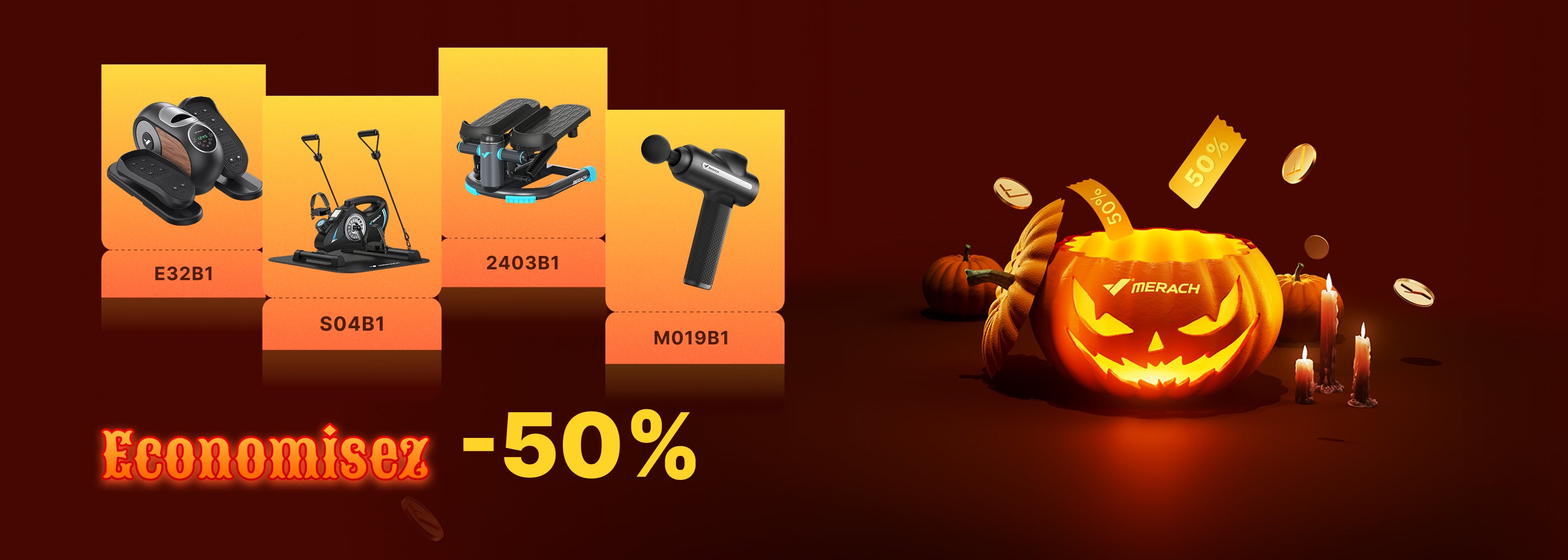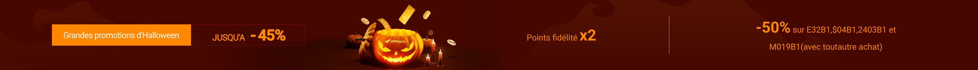 Pour l'achat de n'importe quel produit, profitez d'une remise exceptionnelle de 50% sur les modèles E32B1, S04B1, 2403B1 et M019B1.