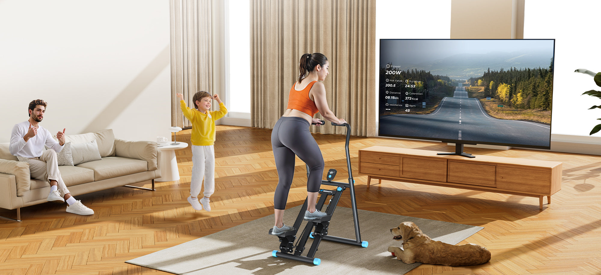 Ajustez les modes Léger/Moyen/Lourd pour personnaliser l'intensité de votre power climber stair stepper pro. Brûle les calories 30% plus vite que les steppers de base !