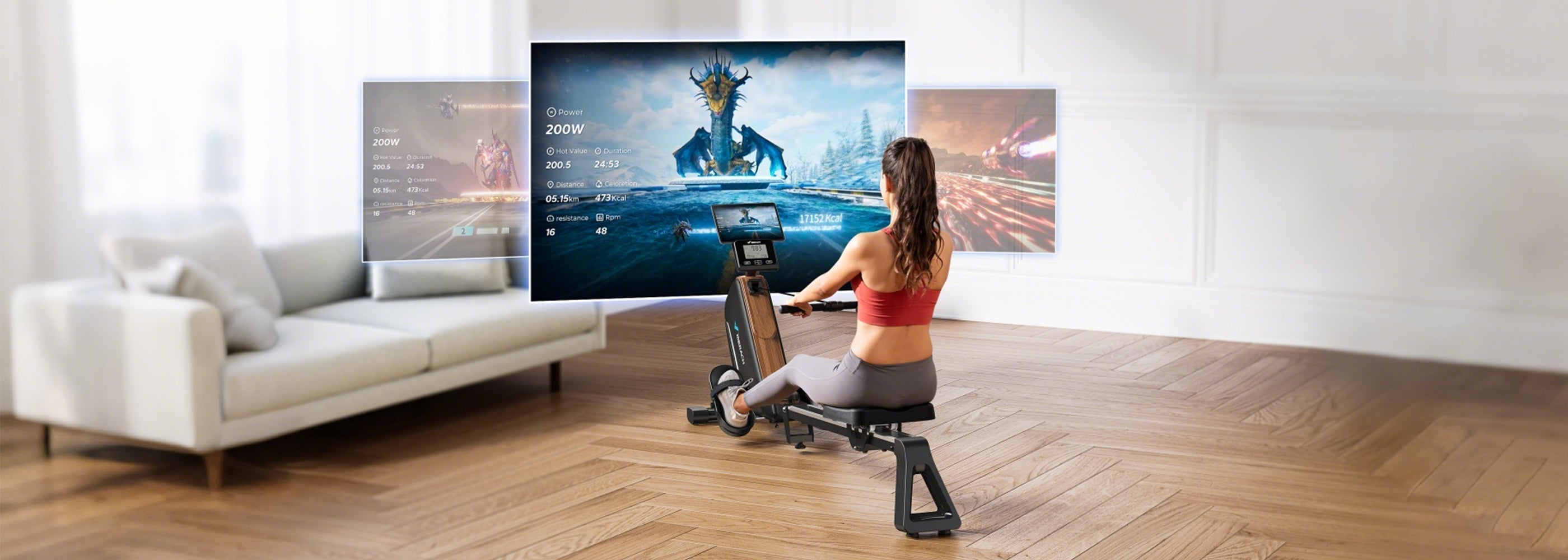 Connectez-vous à l'application Merach pour vous amuser et vous motiver à l'infini.