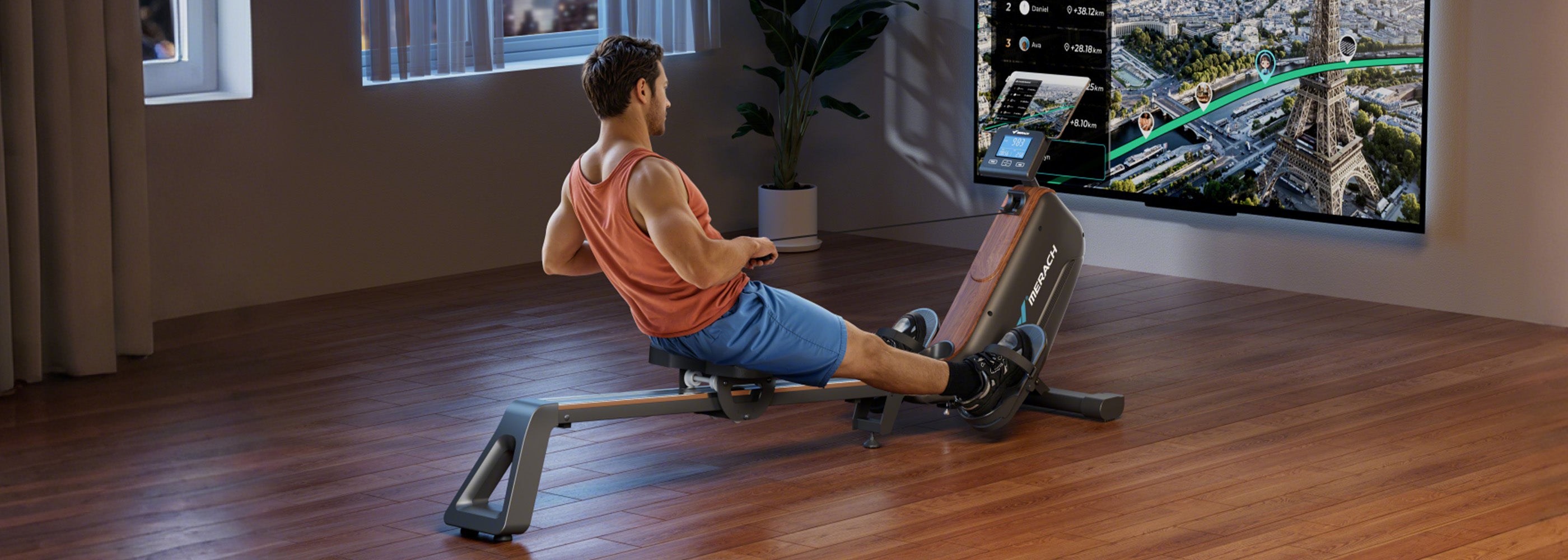 Connectez-vous à l'application MERACH APP via Bluetooth pour suivre vos données d'entraînement clairement sur le grand écran et analyser vos performances en temps réel.