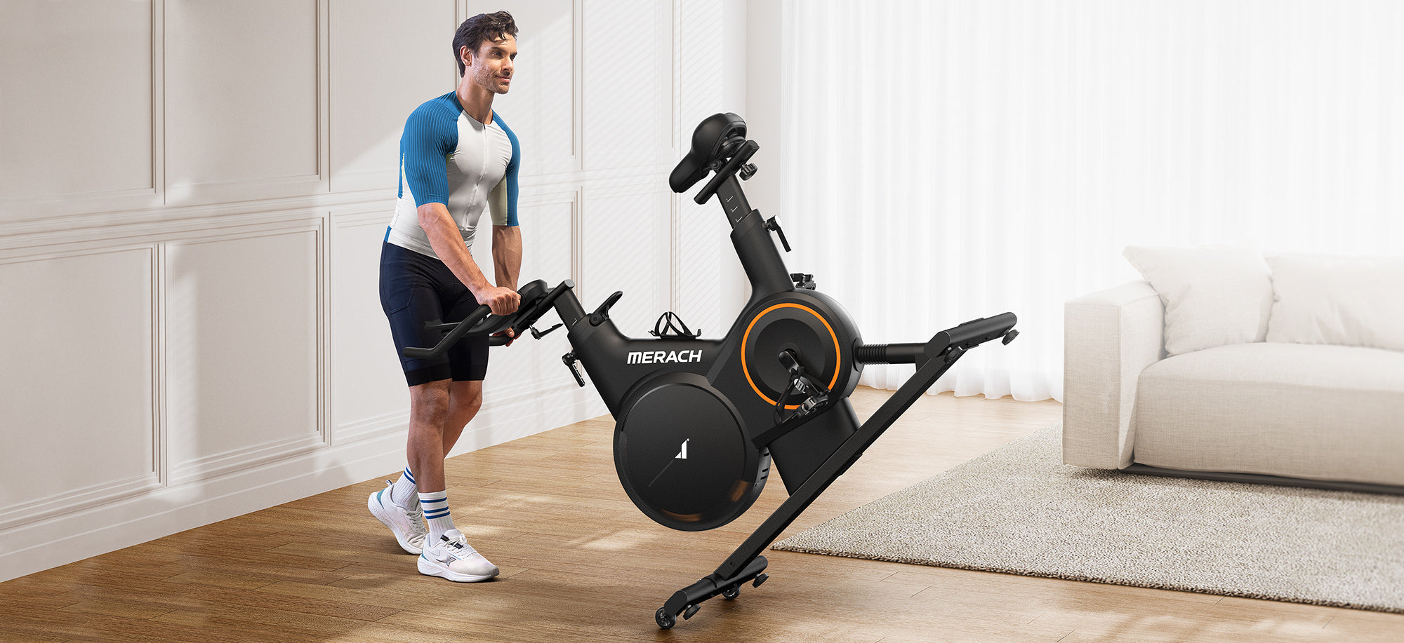 MERACH vélo d'intérieur silencieux avec 16 niveaux de résistance, connectivité à une application, et simulation d’inclinaison ±6°. La selle et le guidon sont ajustables—idéal pour des entraînements efficaces à domicile.