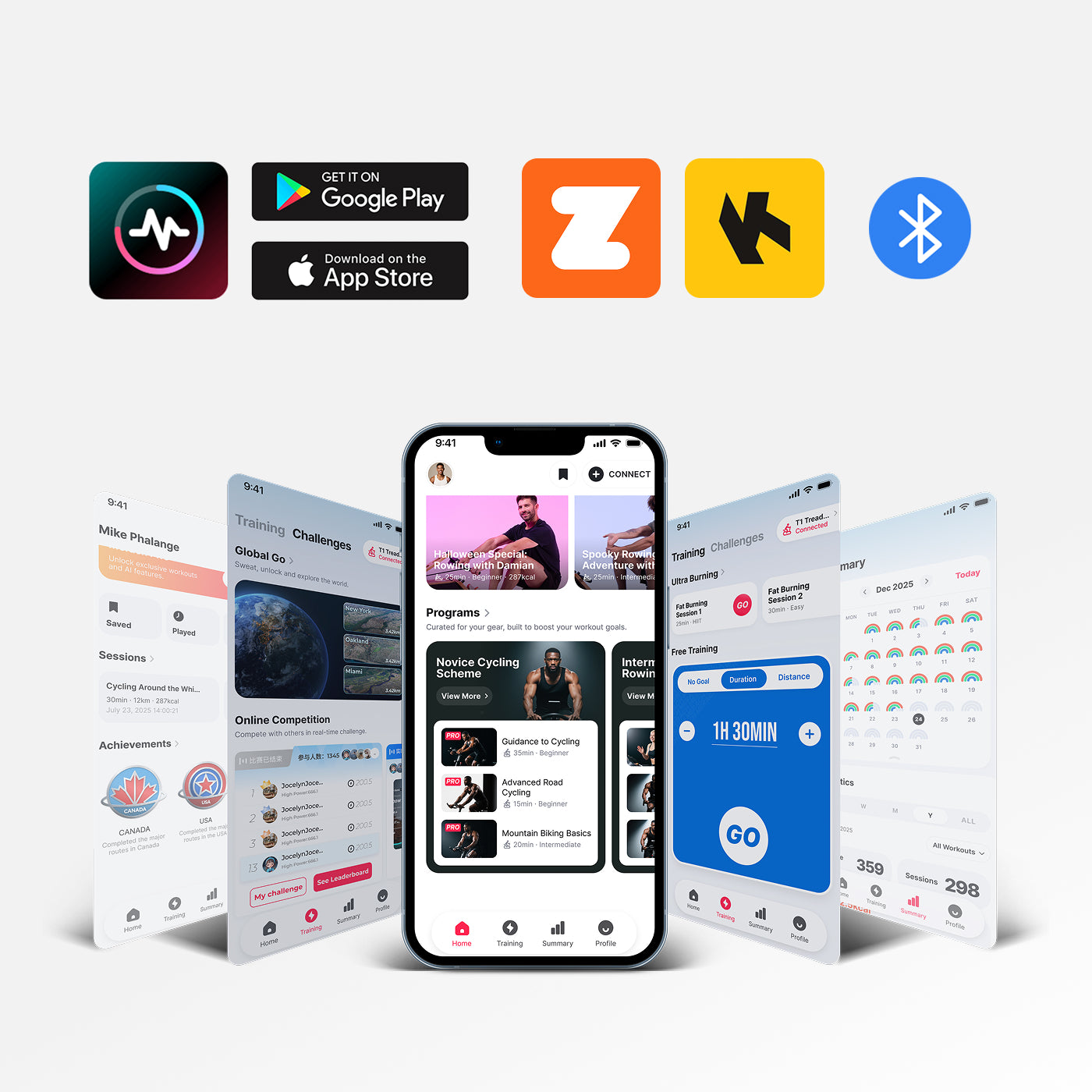 Connectez votre vélo à MERACH, Kinomap ou Zwift pour suivre vos performances en temps réel et garder une motivation maximale à chaque séance.