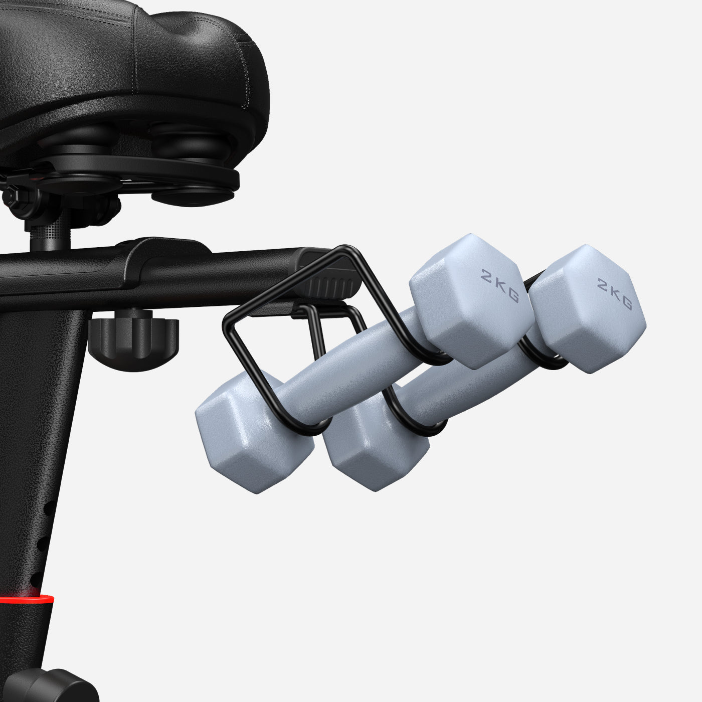 Alternez facilement entre entraînement cardio et musculation grâce au support dédié aux haltères.