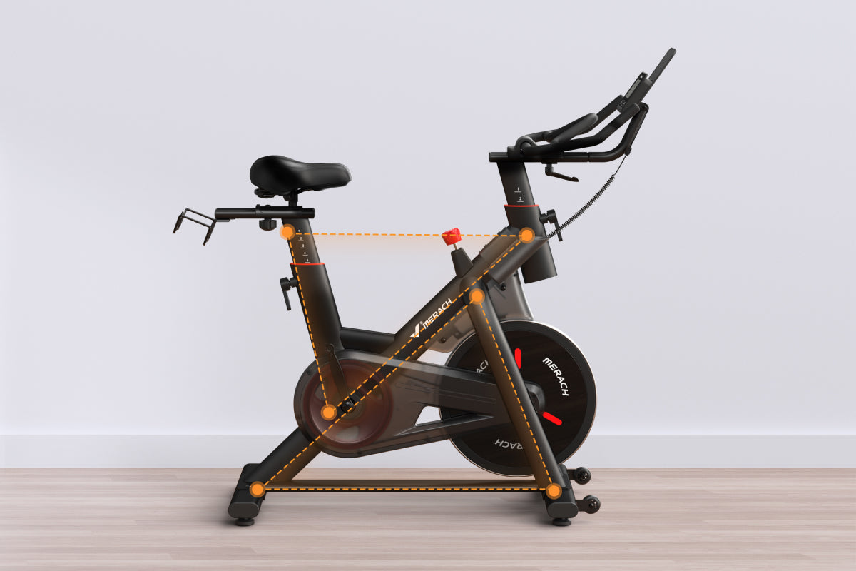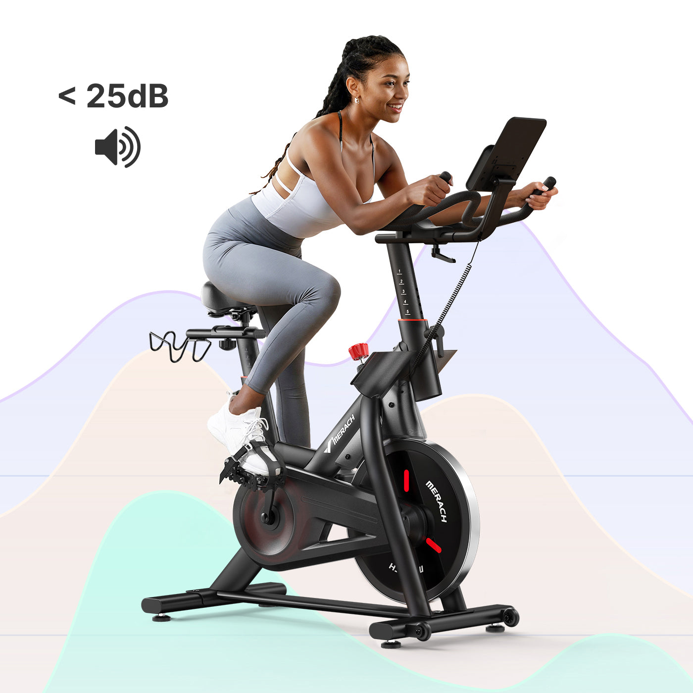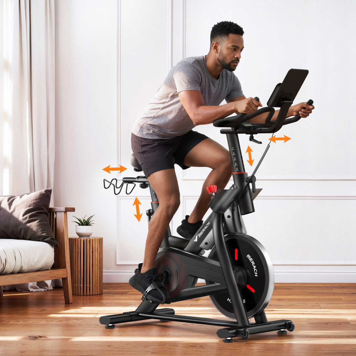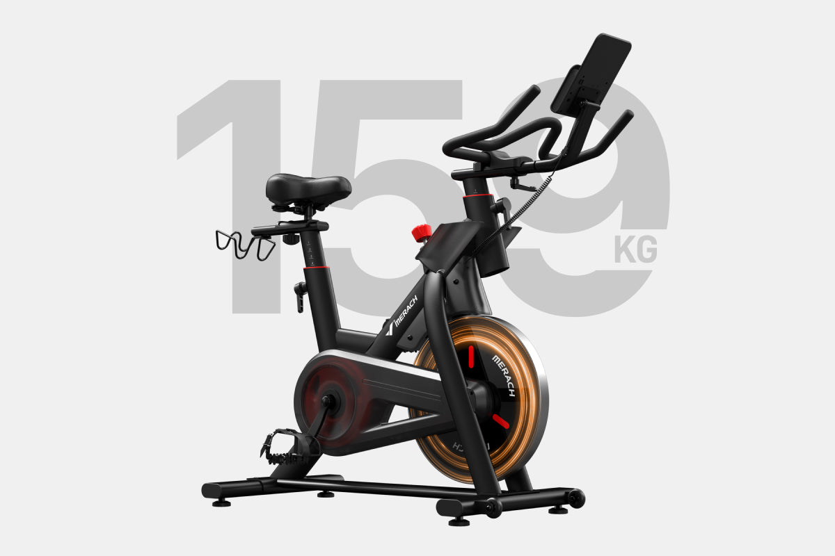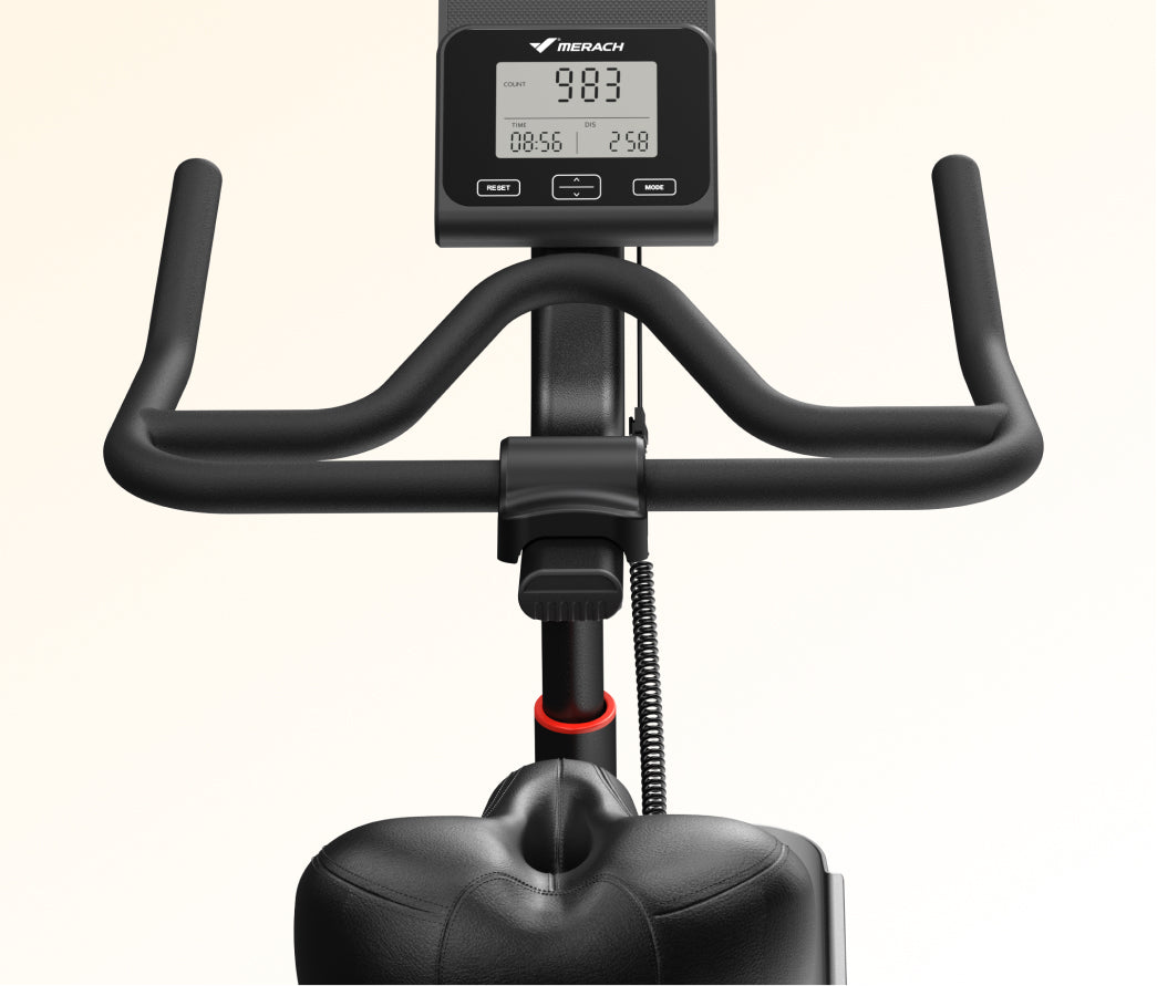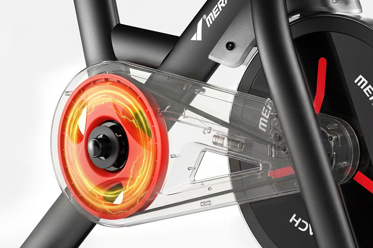Le vélo d’appartement Merach S29B1 est équipé d’un volant d’inertie de 10 kg en version robuste, idéal pour l’entraînement fractionné de haute intensité (HIIT) avec des accélérations puissantes et une excellente stabilité.