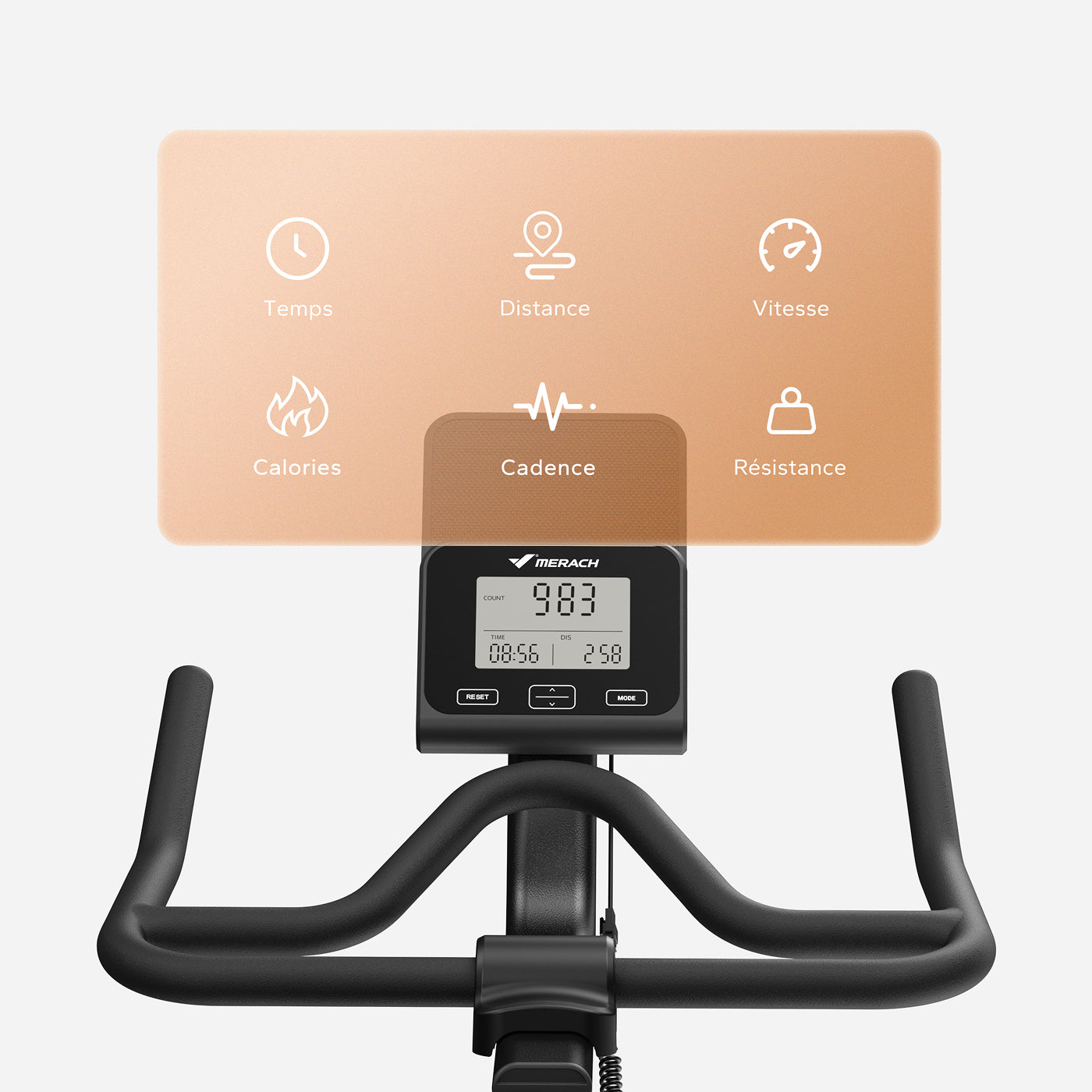 - Moniteur LCD : Temps, Distance, Vitesse, Calories, Cadence de pédalage, Résistance