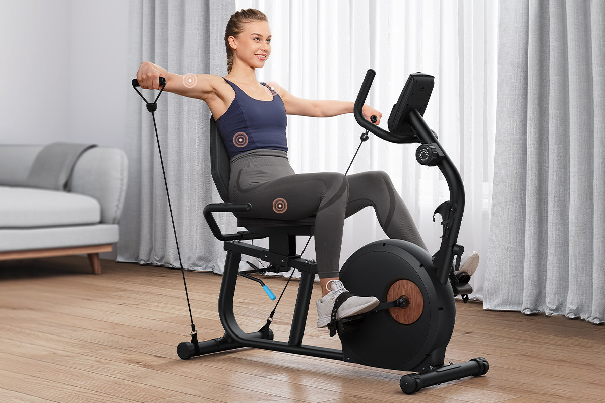 Les bandes de résistance intégrées permettent un entraînement ciblé du haut du corps pendant le pédalage – idéal pour améliorer la condition physique globale et soutenir la rééducation.